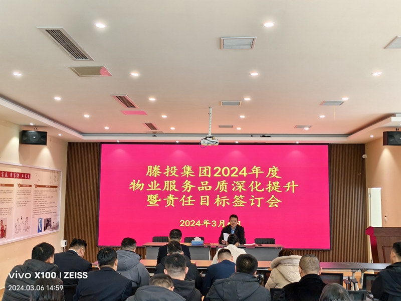 為認真貫徹執行集團公司關于啟動“物業品質深化提升主題活動”部署要求,全面提升集團下屬各物業公司的服務品質。3月6日,滕投集團萬德物業公司召開了“2024年度物業服務品質深化提升年啟動會暨責任目標簽訂會議”。會議旨在明確新一年的服務品質提升目標,落實責任分工,確保各項措施得到有效執行,為業主提供更加優質、高