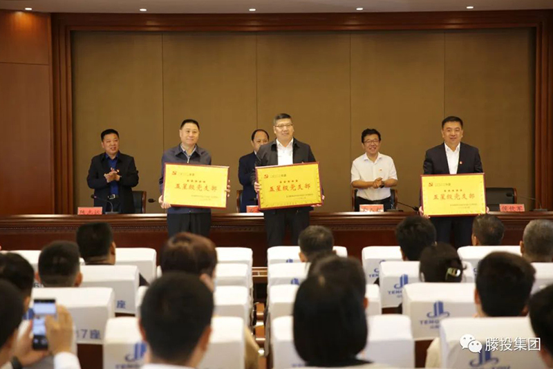 4月19日,滕投集團舉行2022年度五星級黨支部授牌儀式。開發區政工部副部長董魯黔,開發區政工部黨建群團科科長高陽,滕發集團黨委委員、副總經理陳志遠參加授牌儀式。會議由滕發集團黨委委員、副總經理、滕投集團黨總支書記、董事長方玉新主持。會上,董魯黔、陳志遠為天行健公司黨支部、工程項目管理黨支部、興滕公司黨支部